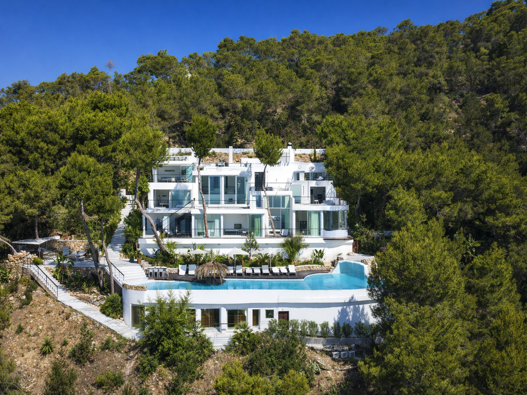 Perched on top of a hill, this impressive property offers breathtaking panoramic views of the sea and Formentera. Its exclusive design and private surroundings make it a perfect retreat for groups seeking luxury and discretion. It also includes premium services such as a private chef, butler, and concierge.