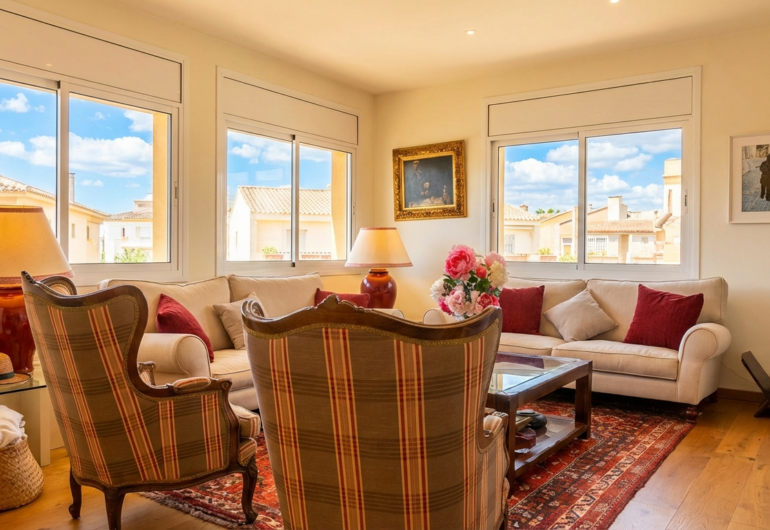One of its standout features is access to an XXL communal swimming pool surrounded by well-maintained gardens. Thanks to the low number of neighbors, it feels almost private. The apartment also includes two private parking spaces — a real asset in this part of Sitges.