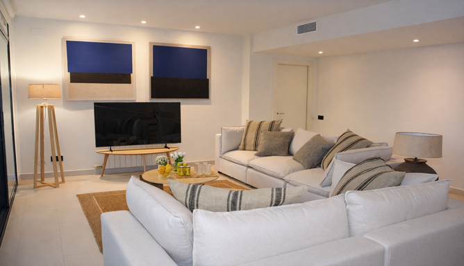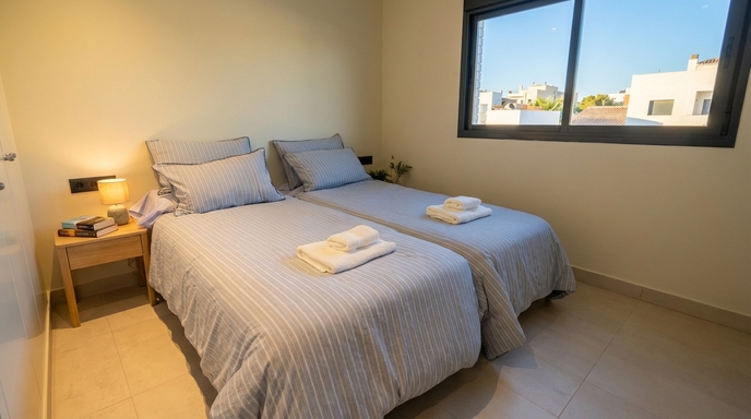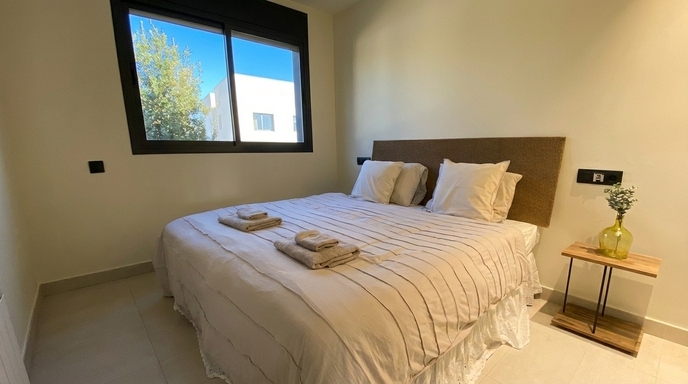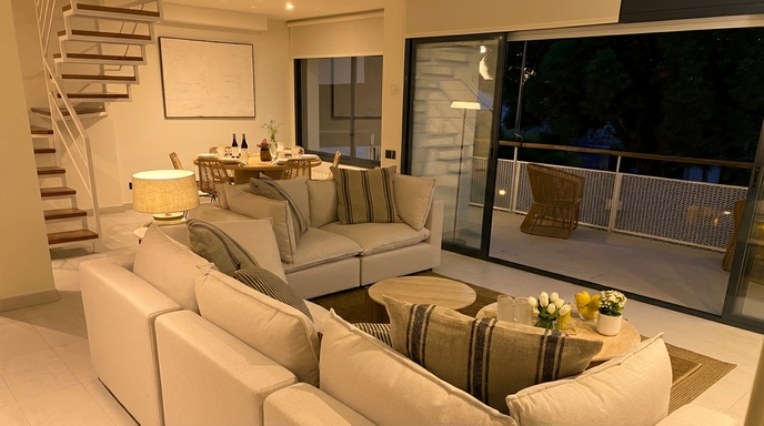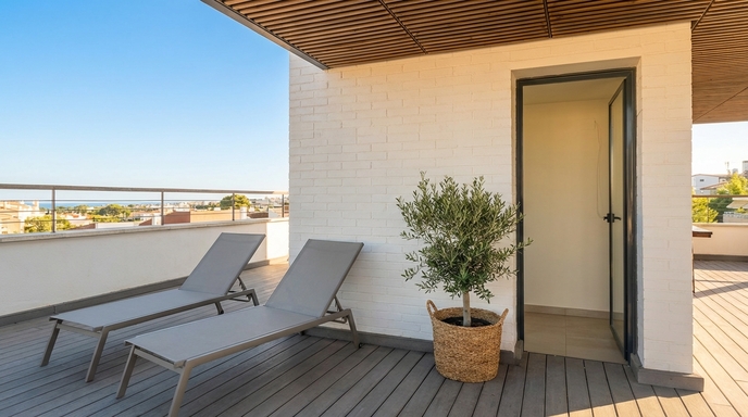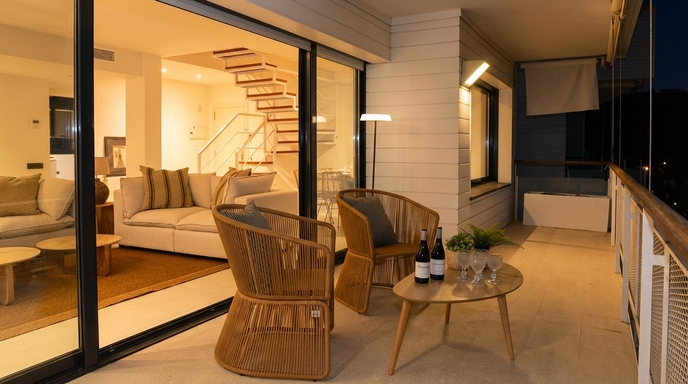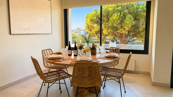 With a practical layout and generous spaces, the apartment combines functionality and simplicity in a calm and laid-back atmosphere. Natural light flows through every room, enhancing the warmth of the living area, the spaciousness of the bedroom and the peaceful surroundings. A modern staircase connects to the rooftop terrace—an ideal spot to enjoy the weather, read, share a meal or simply admire the Sitges sky. Every detail is designed to ensure a pleasant and effortless stay.