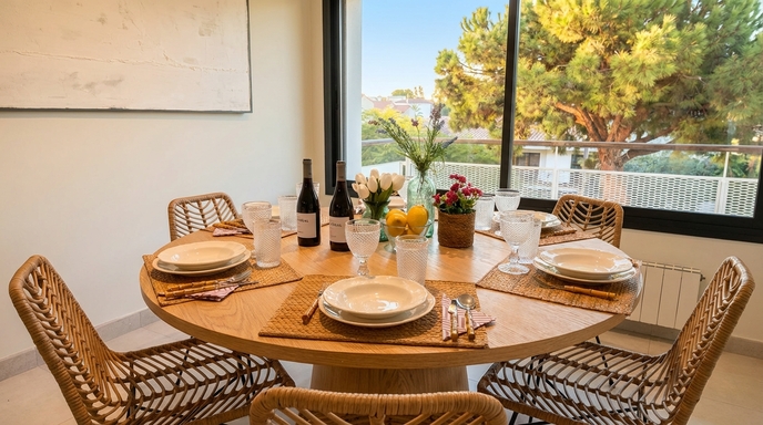 Set in an area that blends seaside charm with local life, La Pedra offers the perfect place to enjoy sunshine, sea breeze and comfort in a bright, welcoming space. Just two minutes from the beach and close to Sitges’ main attractions, this holiday apartment in Sitges is ideal for those looking to relax, unwind and experience the Mediterranean with comfort and privacy.