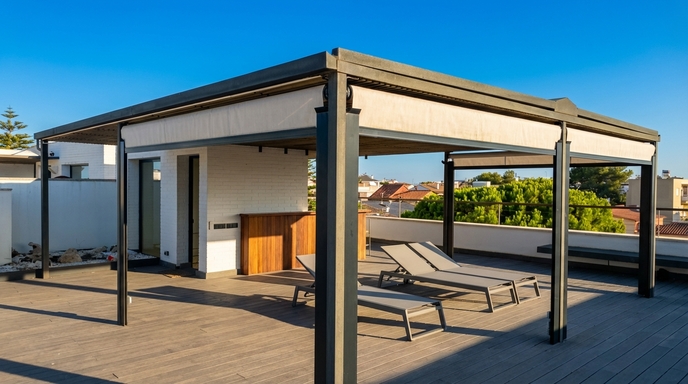 Rooftop terrace with pergola.