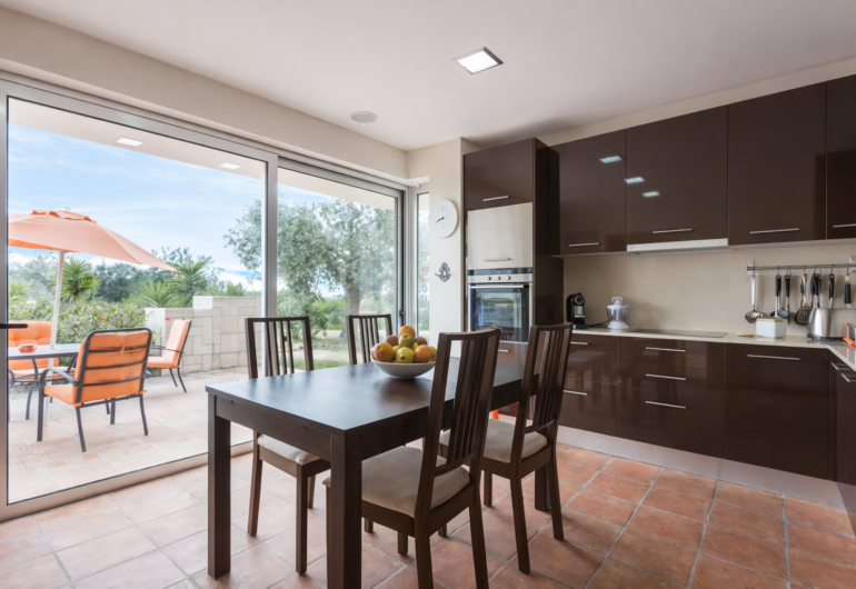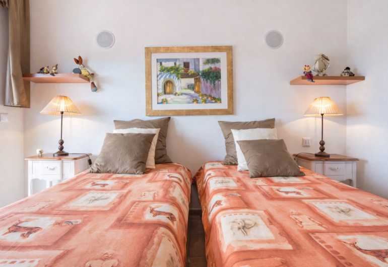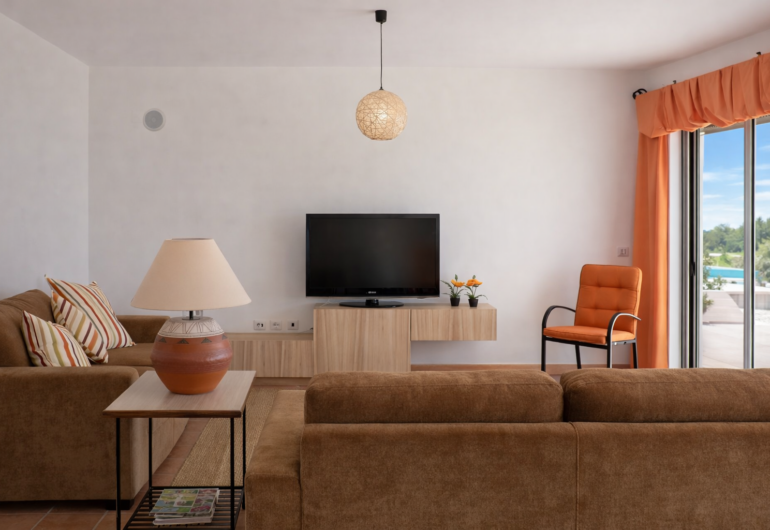 Inside, the villa offers spacious and comfortable interiors, decorated with high-quality materials and refined finishes. Modern furnishings, warm tones and a well-balanced layout create spaces designed for rest, connection and shared experiences. Every element has been carefully selected to ensure a comfortable and exclusive stay, ideal for both families and groups of friends.