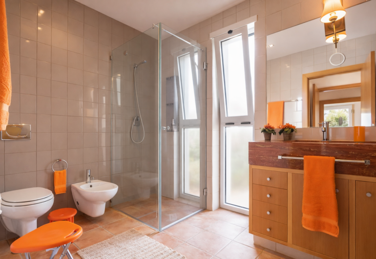 The villa is arranged into two houses for one single group, and each bedroom has its own en-suite bathroom with shower.