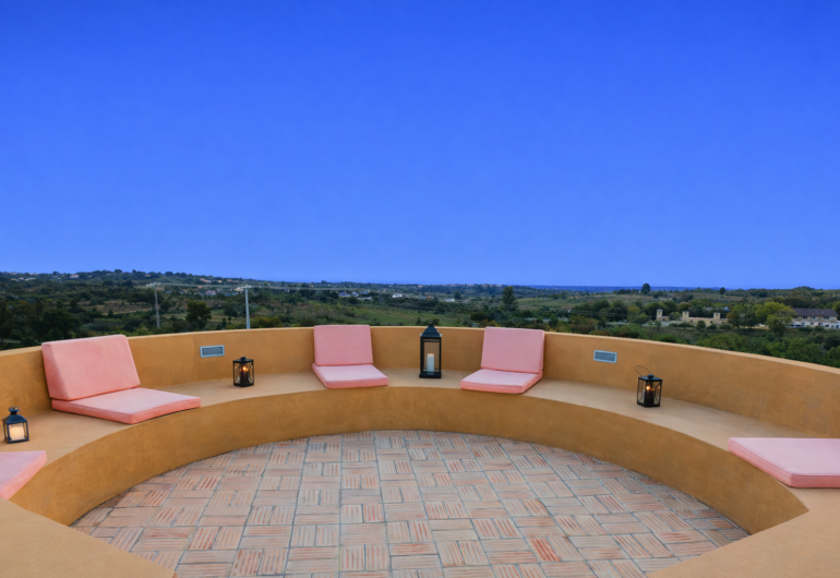Adding to its character, the villa incorporates a fully restored former windmill, featuring a spectacular circular terrace at the top with 360º panoramic views over the Ria Formosa, the sea and the Serra de São Miguel. This unique space turns every sunset into a memorable moment. All of this makes Villa WindMill a luxury holiday villa in Faro with private pool, perfect for enjoying the Algarve with space, tranquillity and style.