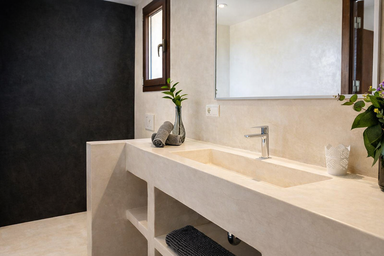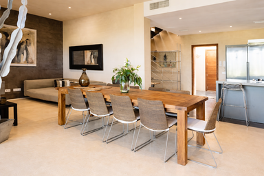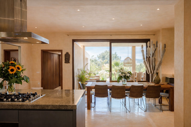 The interiors of Edén Mediterráneo stand out for their modern and functional architecture, bathed in natural light and open to the surrounding landscape. With 6 elegant bedrooms and 7 full bathrooms, this private holiday villa in Ibiza offers a warm and exclusive atmosphere.