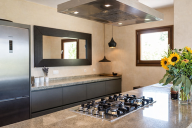 Inside, generous spaces, carefully curated décor, high-quality finishes, and refined details create an atmosphere of sophistication and comfort. Every area has been designed with wellbeing in mind—from the main living room with relaxation and social spaces to a fully equipped kitchen, perfect for both casual meals and special dinners.
