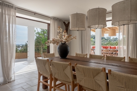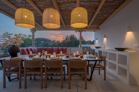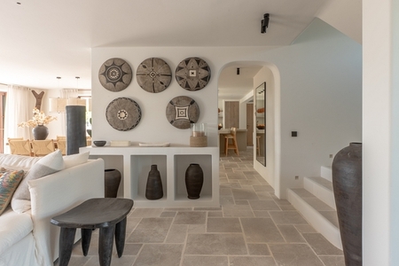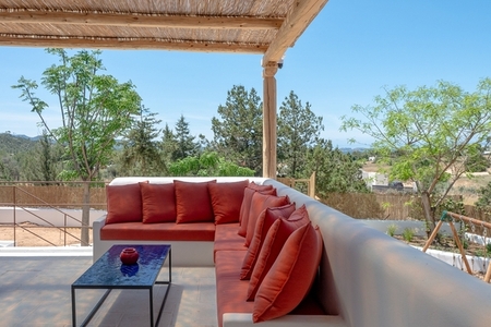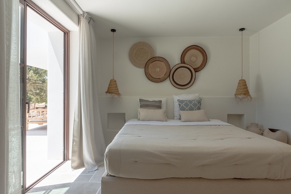 From the very first moment, the villa conveys a profound feeling of pause and harmony. The surroundings invite you to slow down and experience your stay consciously, far from noise and haste. Villa Serenity has been conceived as a sanctuary for absolute relaxation, where generous spaces, a strong connection with nature and meticulous attention to detail create a serene and sophisticated atmosphere. Open, light-filled interiors flow effortlessly into the outdoors, combining boho-Ibizan charm with elegant contemporary design, shaping a luxury holiday villa rental in Ibiza defined by calm, authenticity and refined distinction.