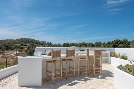 Living the experience of a luxury holiday villa rental in Ibiza means waking up to the stillness of the countryside, enjoying slow breakfasts on the terrace and letting the day unfold between refreshing swims in the private pool, moments of rest beneath the shade of a centuries-old olive tree, and afternoons that culminate on the rooftop, where Mediterranean sunsets become a daily ritual. As night falls, al fresco dinners under a star-filled sky and soft ambient lighting create memories that linger long after your stay.