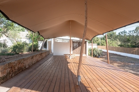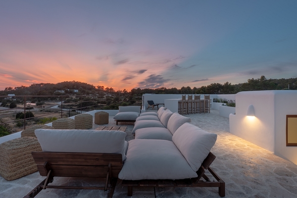 Outdoors, the private swimming pool takes centre stage, harmoniously integrated into the natural surroundings and framed by native vegetation. Covered and open terraces create different atmospheres to enjoy throughout the day, from peaceful breakfasts to dinners under the stars. The rooftop, with open views over the Mediterranean and Ibiza’s west coast, adds an exclusive space to admire unforgettable sunsets, while lounge areas and relaxation zones complete an environment designed to enjoy the Ibizan lifestyle with calm, privacy and understated sophistication.