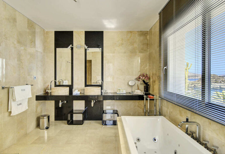 The interior of Villa Mar Azul has been designed to offer an experience of absolute comfort, where contemporary architecture blends seamlessly with spaces dedicated to rest and wellbeing. Spread across several levels, the villa features six elegant en-suite bedrooms, created to ensure privacy and comfort in a bright and sophisticated environment. The master suite, set in an elevated position, offers panoramic sea views and becomes a true private sanctuary.