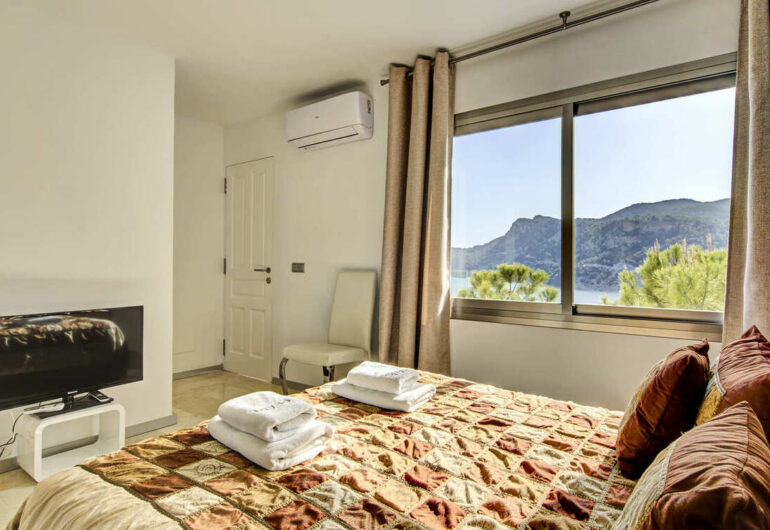 Outdoors, the seafront infinity pool blends naturally into the landscape, surrounded by sun loungers, chill-out areas and terraces with elegant finishes. Direct access to the sea via a private stone staircase allows for refreshing morning swims or sunset dips, adding a rare and highly exclusive feature.