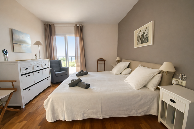 Inside, from the living areas to the bedrooms, everything reflects balance and refinement. The spaces are open and fluid, seamlessly connecting indoor and outdoor living. This makes the property a standout option within the luxury villa rental Sitges market.