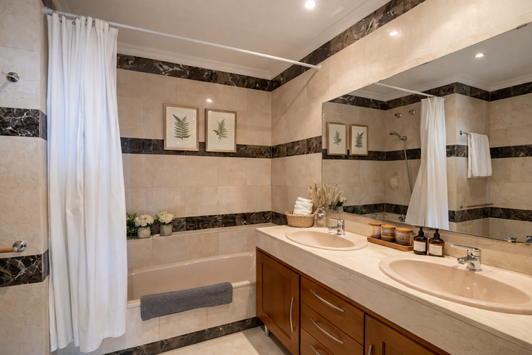 Additionally, the villa has 2 bathrooms: one with shower and one with bathtub.