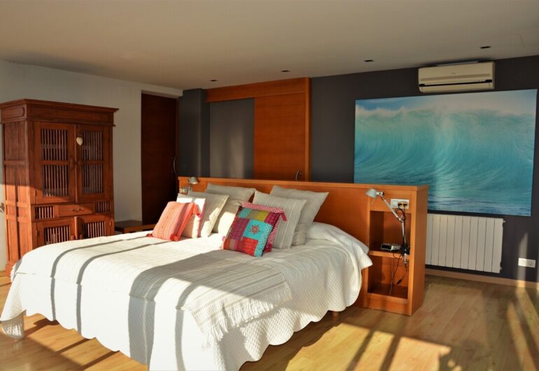 The location is another highlight. The villa is just an 18-minute walk from the beach—accessible via a staircase from the residential area—5 minutes by car from the center of Sitges, and 30 minutes from Barcelona Airport. While having a car is recommended for added convenience, a bus stop is located just 400 meters away.