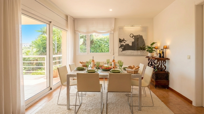 From Villa Bon Neguit, you can easily reach beaches such as La Barra or Terramar, cycle along the charming seafront promenade or enjoy a round of golf just steps from the property. In addition, restaurants such as Terrassa La Punta, Ohana or Beso Beach allow you to savour local cuisine with sea views.