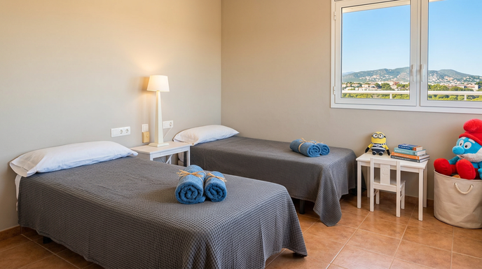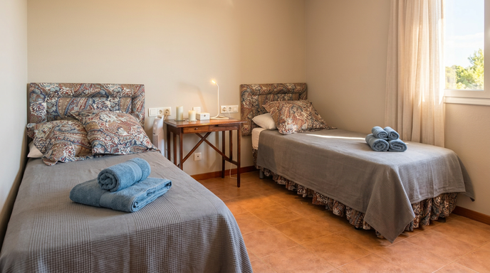 2 twin bedrooms with single beds (90 x 190 cm), one of them also includes a bunk bed.