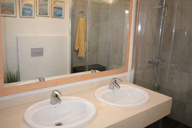 1 full bathroom with washbasin and shower