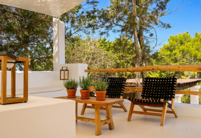 Villa Ibiza Can Rafel is set on a fenced 1,000 m² plot, ensuring privacy and tranquillity. It is located near Cala Tarida, one of the most beautiful and peaceful beaches on the island’s southwest coast. Just 5 minutes by car or a 25-minute walk (via road) to the beach.