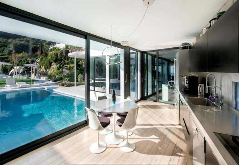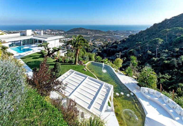 Villa Barcelona is a luxury villa with pool very near to Barcelona. It is equipped with all kinds of services and state-of-the-art technology. The house has a private swimming pool, one of the most luxurious in Barcelona. The views from the top of the villa allow you to appreciate the sea, which is very close to the villa. It has central heating, a lift that connects its 5 floors, remote control of lights, among many others. The location is paradisiacal as it has a garden area that is within a Natural Park, which gives it even more glamour.